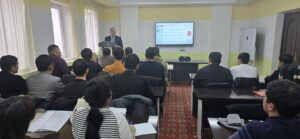 Kásiplesleri menen sáwbetlesiw waqtında Marat Tajimuratovich universitet, magistratura hám aspiranturaǵa qabıl etiw tártibi haqqında maǵlıwmat berdi. Bunnan tısqarı, docent M.T. Aytmuratov kafedrada alıp barılıp atırǵan ilimiy-izertlew jumısları menen tanıstı.